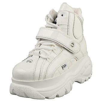 Buffalo Calf Leather Patent Womens Platform Boots in White
