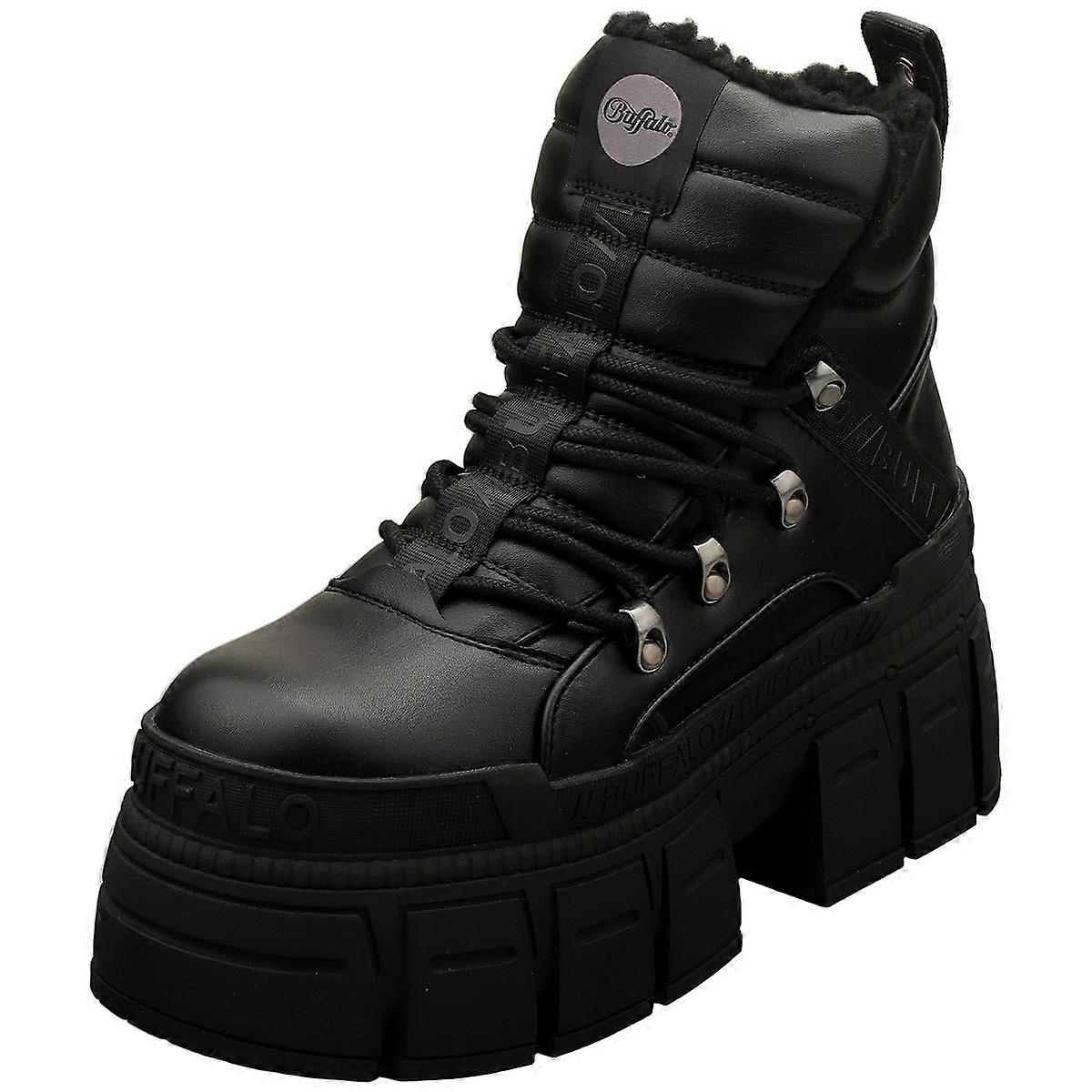 Buffalo Gospher Hike Mid Pad Vegan Womens Platform Boots in Black