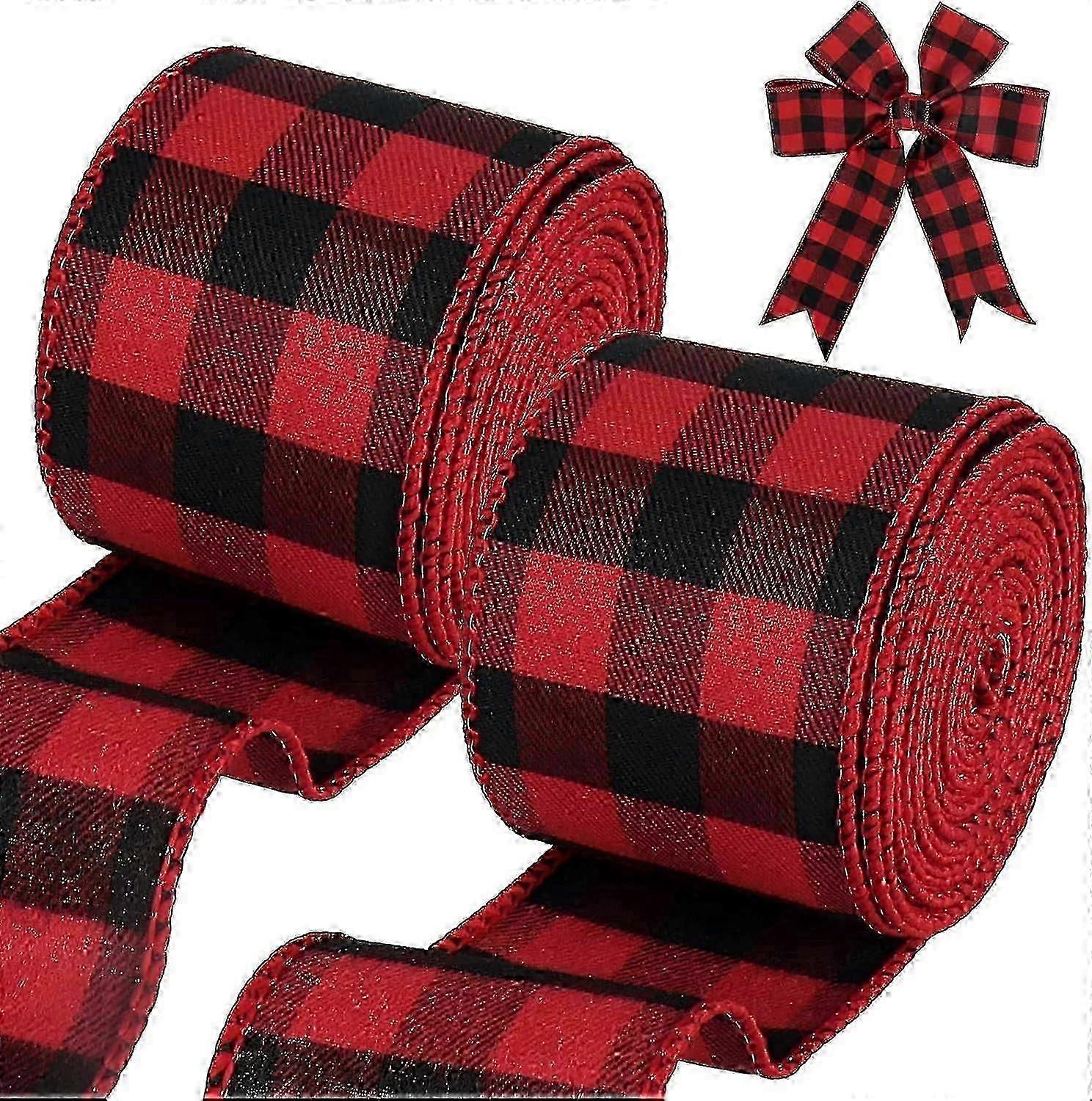 Buffalo Plaid Ribbon, 19.6 Yards 2.5 inch Wired Christmas Ribbon, Red and Black Plaid Ribbon for Bow Making, Gift Wrapping, Wreath Making, Christmas T