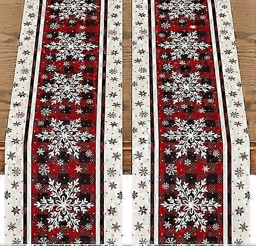 Buffalo Plaid Snowflakes 2PCS Christmas Table Runner, Seasonal Winter Kitchen Dining Table Decoration for Home Party Decor 13x72 Inch
