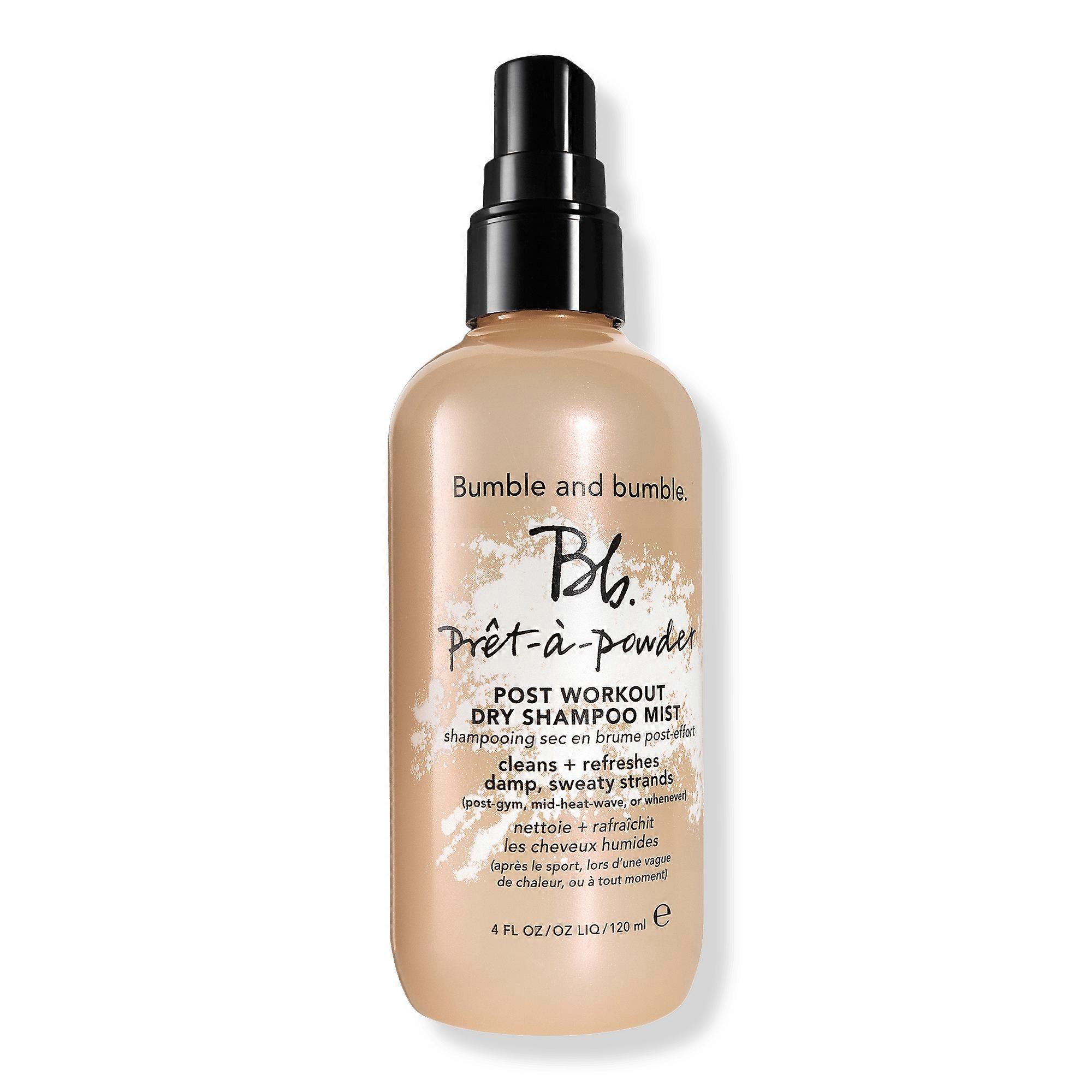 Bumble and bumble's Bb.Post Workout Dry Shampoo Mist is a quick-drying, dual-phase liquid mist formulated specifically to clean and refresh sweaty strands. Benefits Cleans sweaty hairAbsorbs oilHelps eliminate odorNo white cast or residueQuick-dryingFor Fine to Medium, Straight to Curly HairFor Dry HairCruelty-free Key Ingredients White Bamboo Extract and Silica: Help absorb oil and refresh sweaty hairUV Filters: Help protect hair from the drying effects of the sun Formulated Without ParabensSulfatesPhthalatesSiliconesTalcAluminum chlorideMineral OilFormaldehyde Suggested Use: Shake super-well. Section damp or sweaty hair, and apply 2-4 pumps about 6 inches away from roots. Let sit for 15-30 seconds, then shake out with fingers or brush through to cleanse and refresh. Pro Tips: * This bi-phase formula contains powders to help absorb oil and refresh hair. Visible separation and settling is normal - but shake (super) well before using.* Use a towel to absorb excess sweat where hair's damp from the workout - usually at the roots, in the nape, and behind the ears. Then, shake and spray hair in sections.* After applying, tousle hair with hands, brush through, or towel-dry to distribute (and get rid of moisture).* To dry fast, blow-dry on coolPrecautions: Avoid spraying in eyes. UPC: 000002565577 Weight: 0.75 lbs