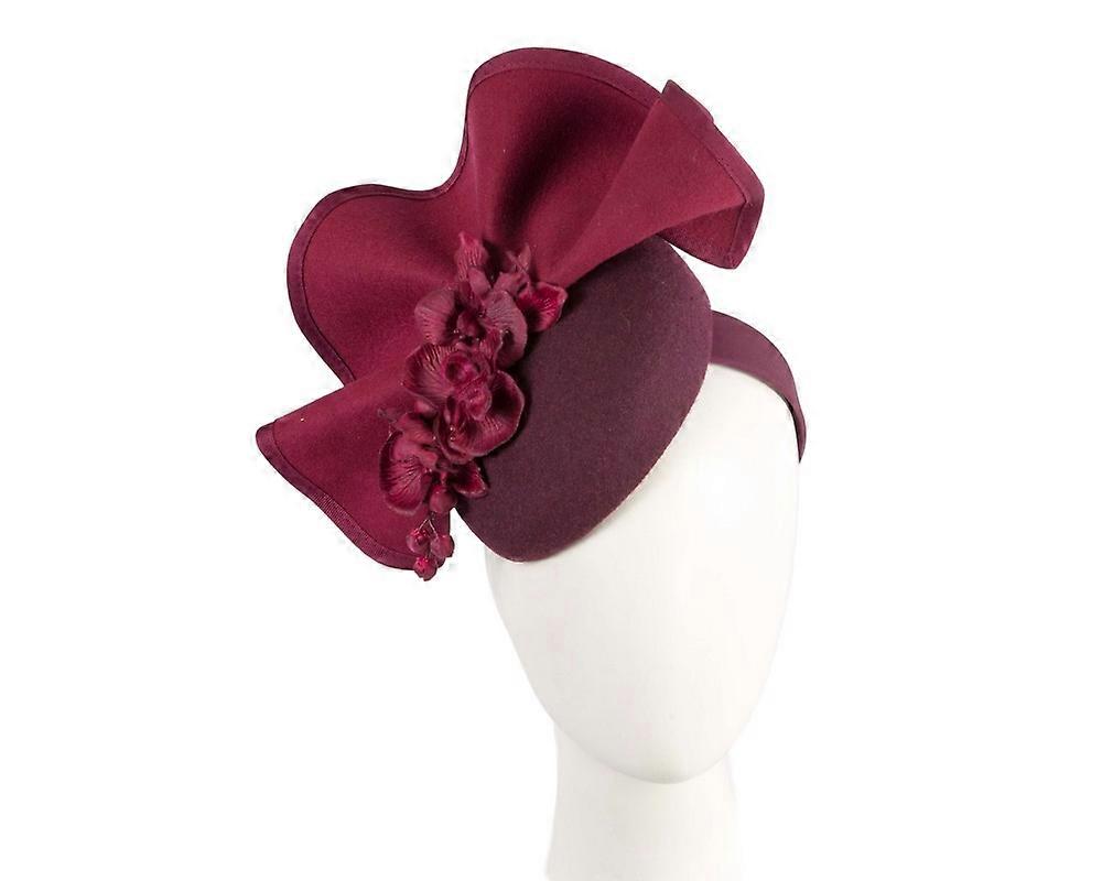 Burgundy winter pillbox fascinator with flowers by Fillies Collection F701W