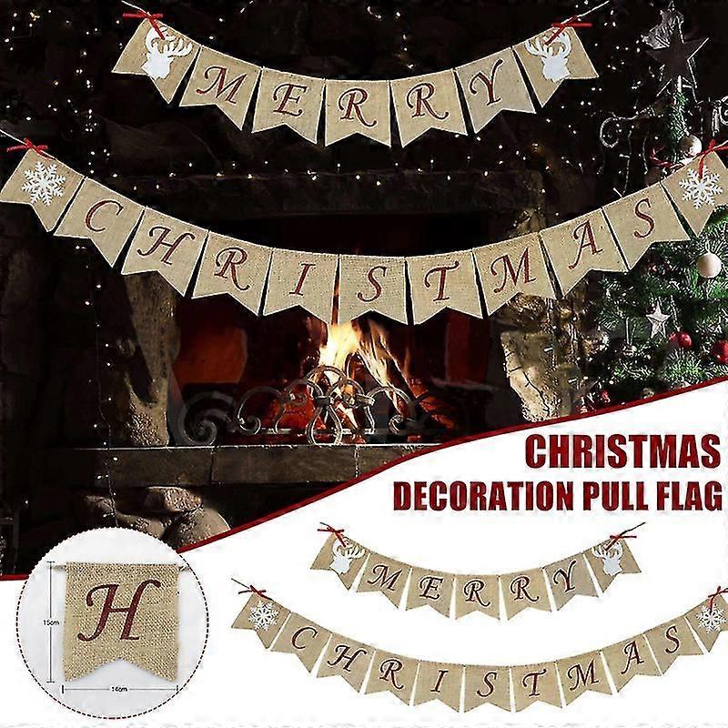Burlap Banner Christmas Party Decoration Home Decor Flag Party Cake Flag Christmas Letter for Holiday New