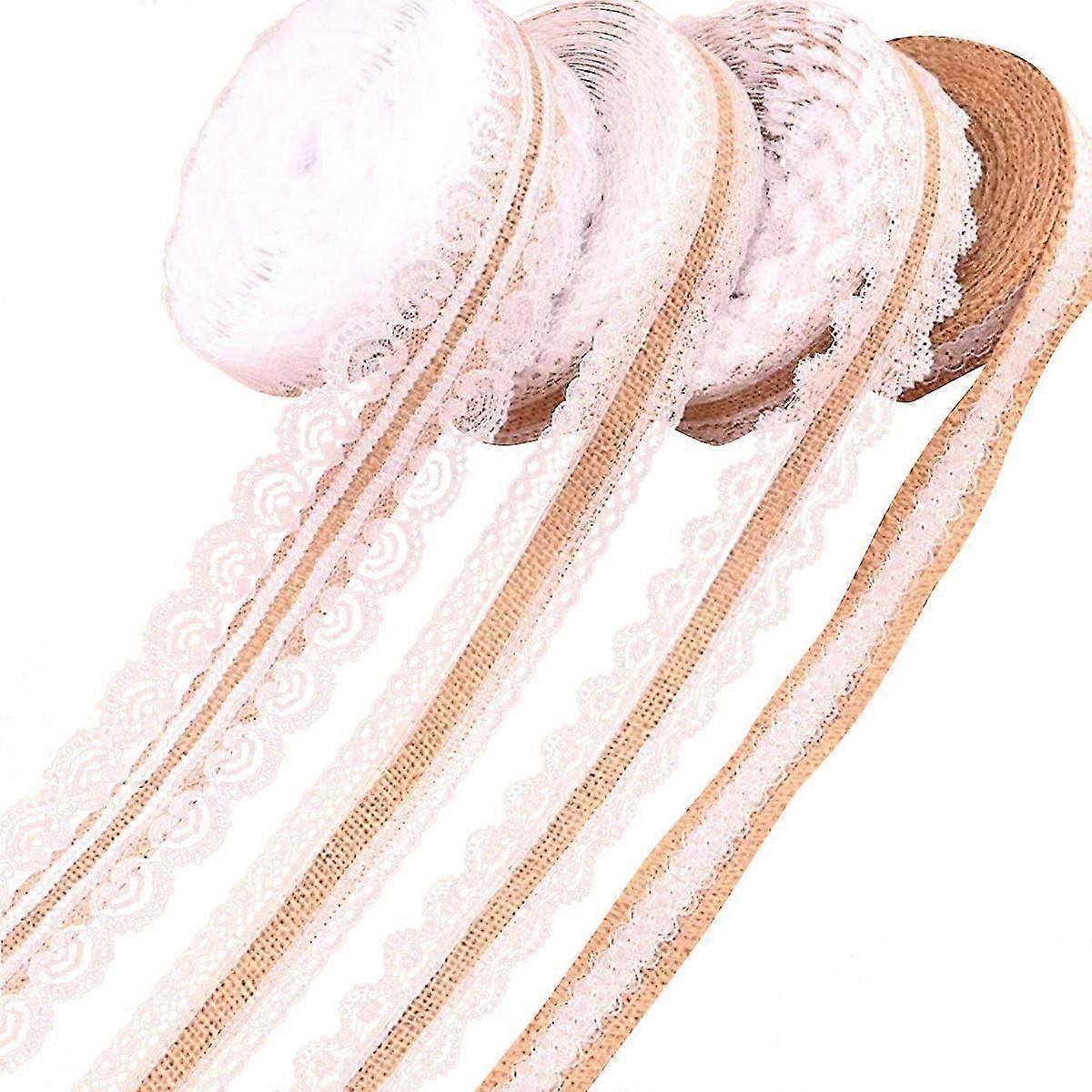 Burlap Ribbon Lace Roll Crafts Ribbon with Twine Rope for Wedding Christmas Decoration DIY Handmade Crafts