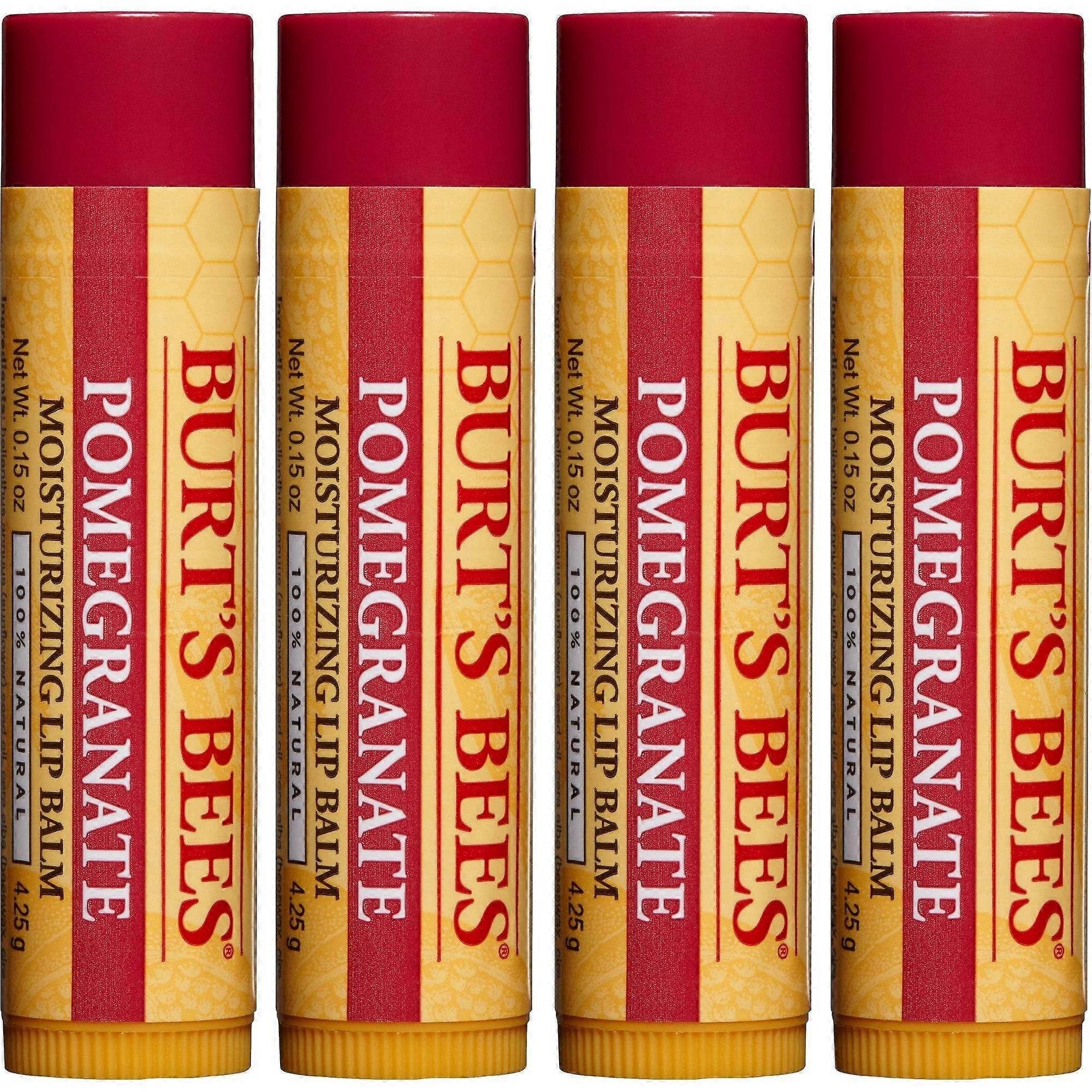 Burt's Bees Natural Moisturizing Lip Balm, Pomegranate, 0.15 Oz X 4 Ea