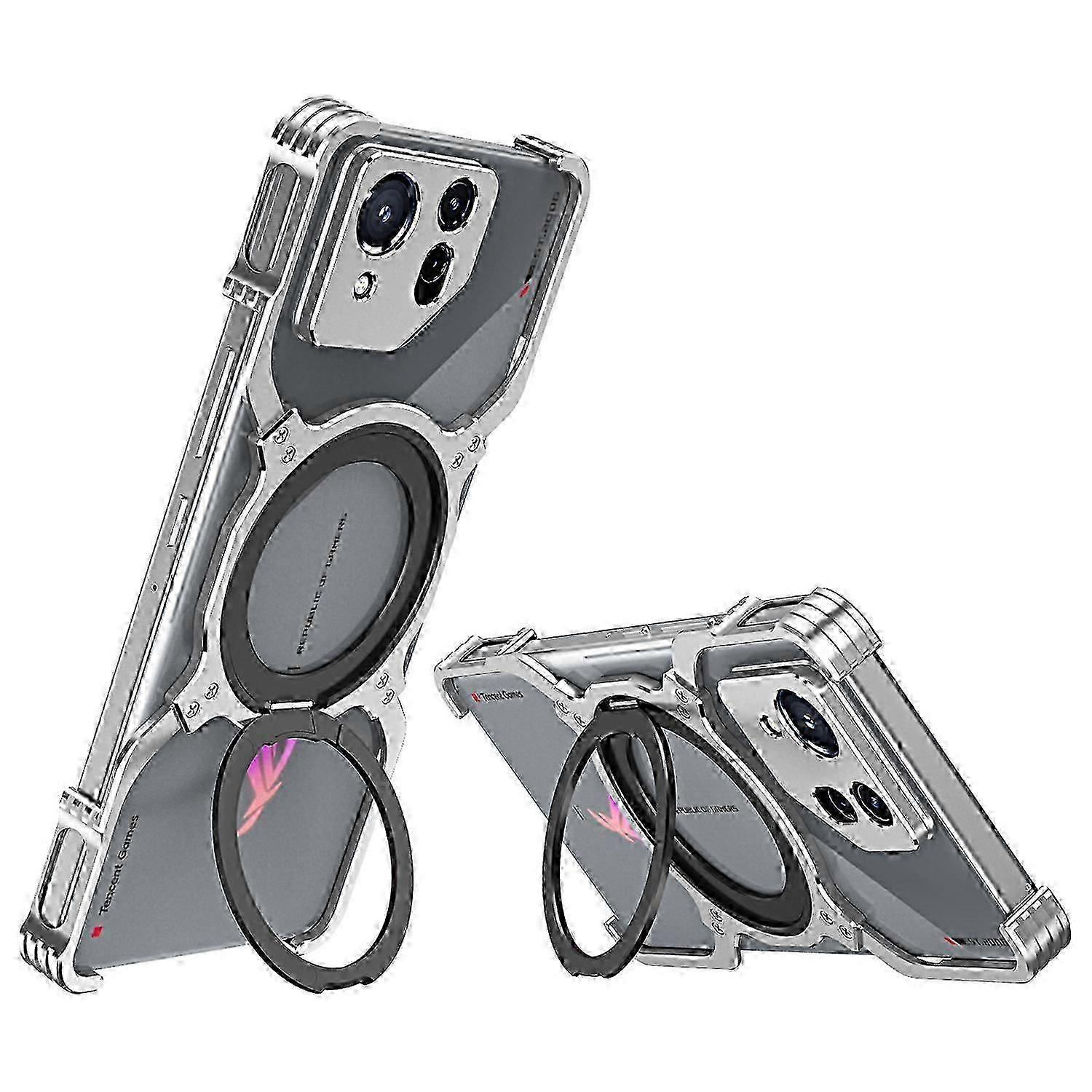 Buy For Asus ROG Phone 8 5G / 8 Pro 5G Bumper Case Frameless Magnetic Kickstand Metal Phone Cover Silver
