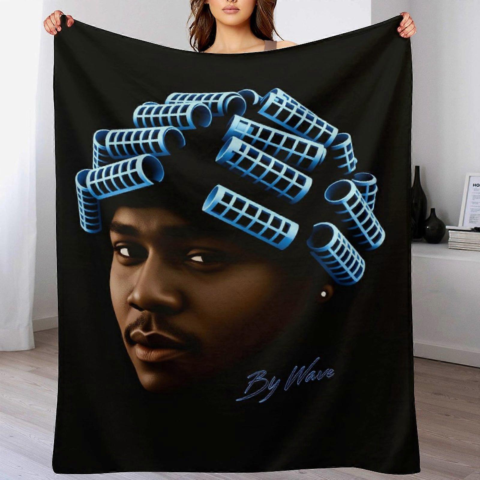 "By Wave" Curler Graphic Print Flannel Blanket - Soft Warm Throw, 50x60 Inch, Trendy Gift for Young Adults (Bed/Couch)
