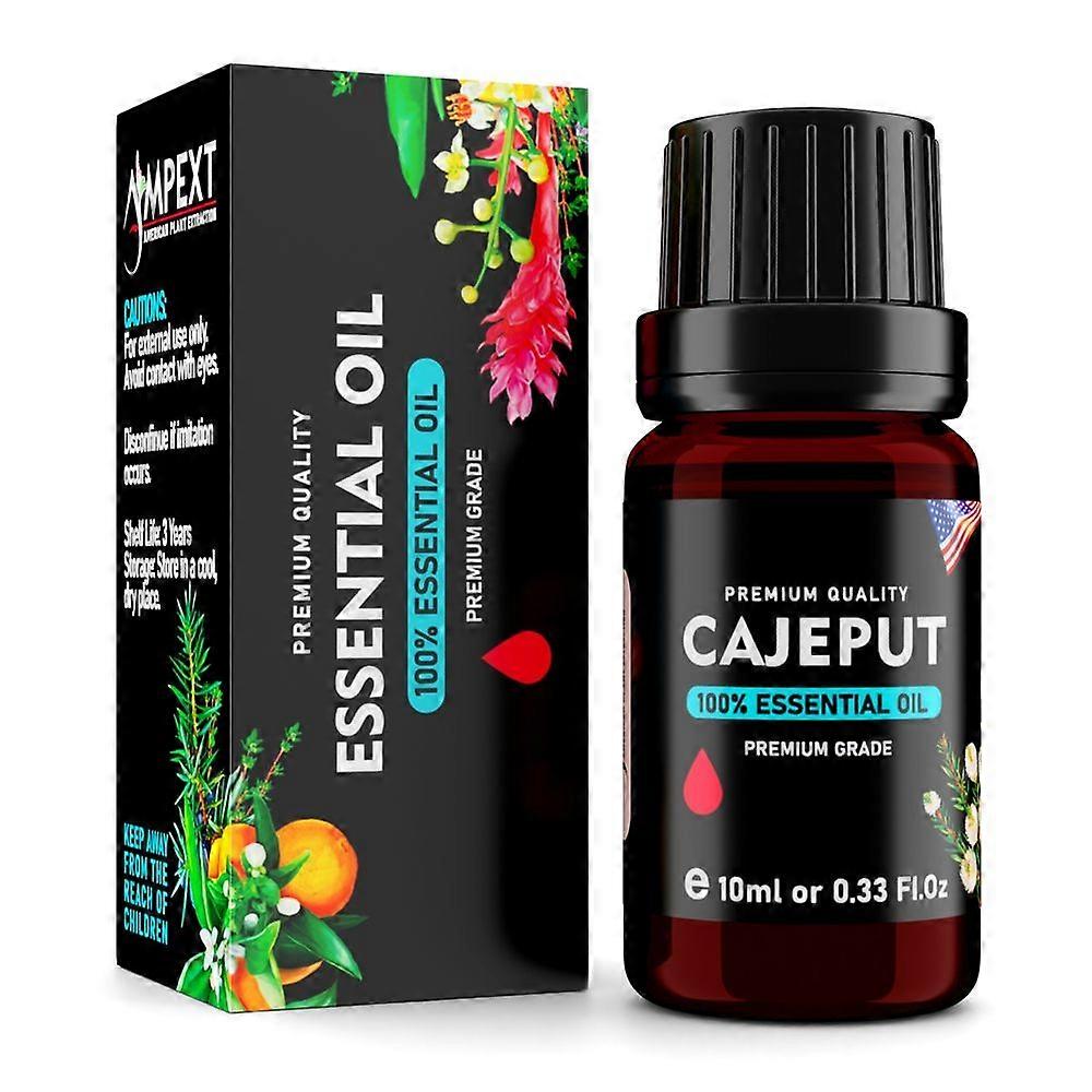 Cajeput (Melaleuca cajuputi) 100% Essential Oil, Premium Grade, 10ml<br><br> <p>Introducing Ampext Premium Quality Cajeput Essential Oil - a refreshing and invigorating essence derived from the leaves of the Melaleuca leucadendra tree. This meticulously crafted 10ml (0.33 Fl.Oz) bottle captures the crisp, camphoraceous aroma characteristic of this prized botanical.</p> <p>About Cajeput:<br>Cajeput, native to Southeast Asia and Australia, has been valued in traditional practices for centuries. Our essential oil is carefully distilled from the tree's leaves, preserving its natural aromatic compounds.</p> <p>Aromatic Profile:</p> Fresh and camphoraceous Slightly medicinal Hints of wood and spice <p>Suggested Uses:</p> Diffusion: Add a few drops to your diffuser for a clean, refreshing aroma Topical: Dilute with a carrier oil before applying to skin for a cooling sensation Massage: Blend with carrier oil for an invigorating massage experience Home Care: Add to homemade cleaning solutions for a fresh scent <p>Cautions:</p> For external use only Avoid contact with eyes and mucous membranes May cause skin sensitivity - always dilute before topical use Consult a qualified aromatherapist before use if pregnant or nursing <p>Storage:&nbsp;Keep tightly sealed in a cool, dry place away from direct sunlight to maintain freshness.</p> <p>Experience the revitalizing essence of Ampext Cajeput Essential Oil, a premium quality extract perfect for adding a fresh, clean aroma to your surroundings and aromatherapy practices.</p> <br>