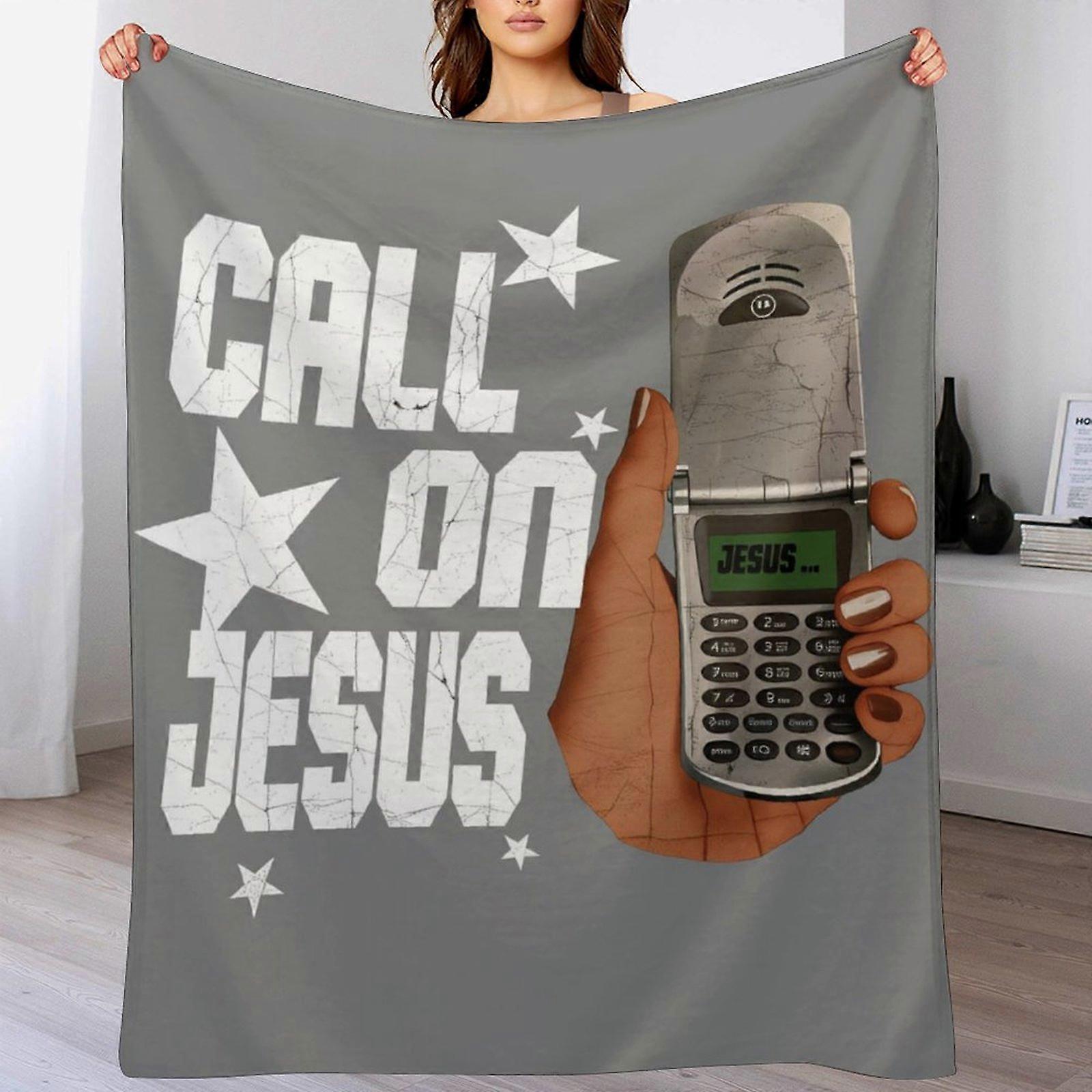 "CALL ON JESUS" Text & Flip Phone Graphic Print Flannel Blanket - Soft Warm Throw, 50x60 Inch, Faith-Based Gift for Adults (Bed/Living Room)