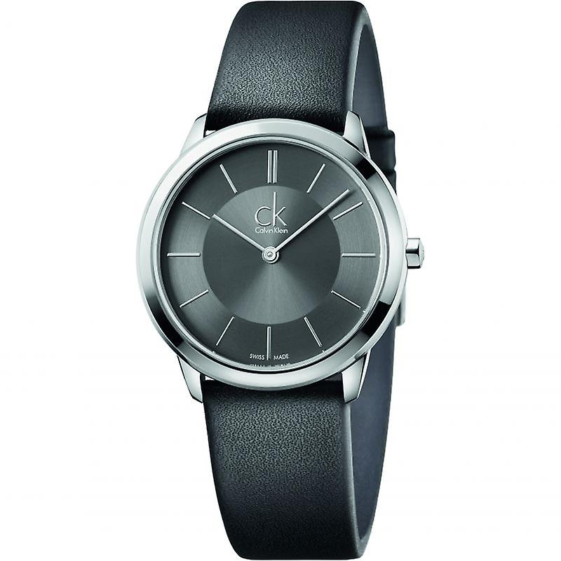 Calvin Klein K3m221c4 Minimal Watch Black Leather Strap Womens Watch