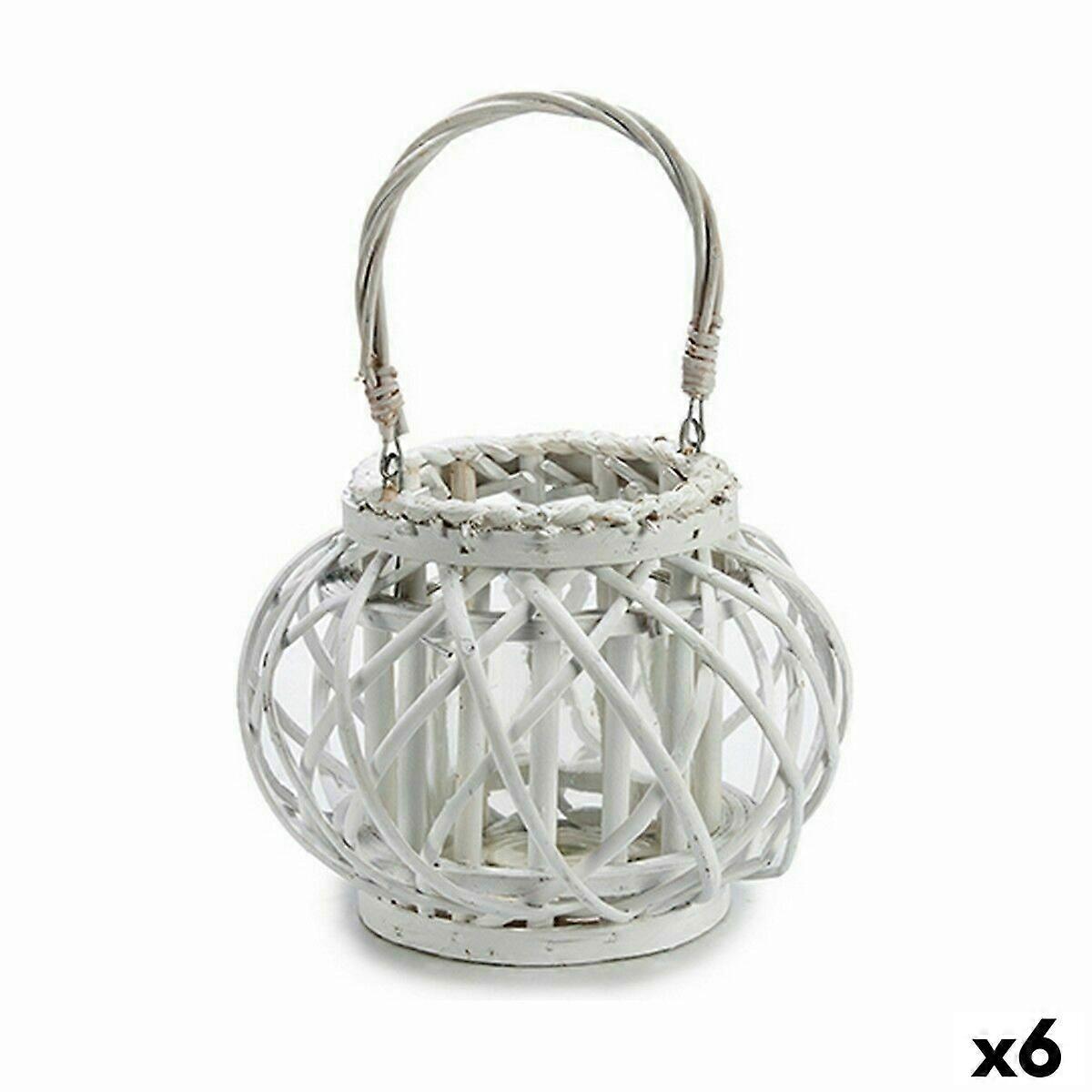 Candleholder White wicker Glass 30 x 19 x 25,5 cm (6 Units)