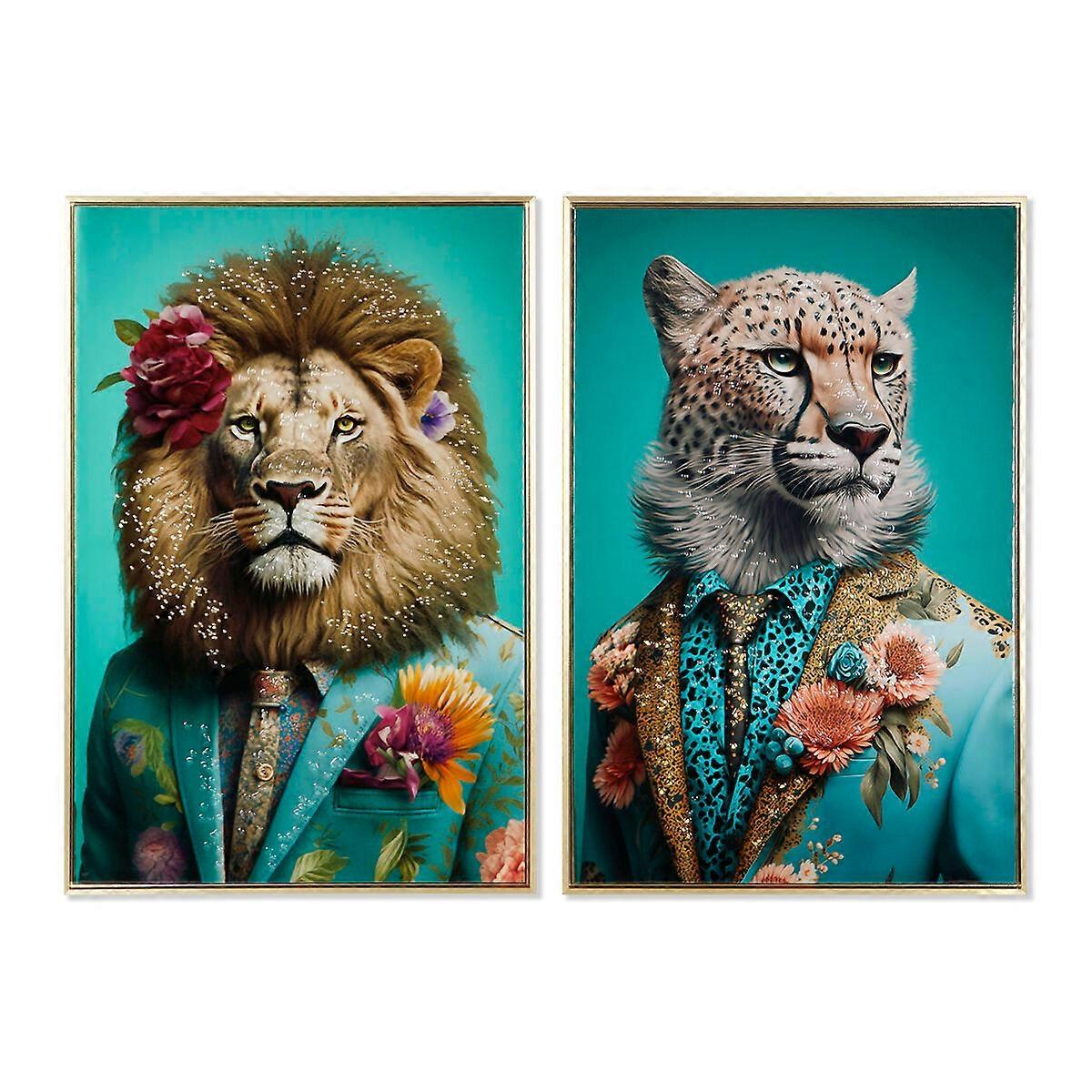 Canvas Home ESPRIT Blue Leopard Colonial Lion 63 x 3,5 x 93 cm 93 x 3,5 x 63,5 cm 63,5 x 3,5 x 93 cm (2 Units)