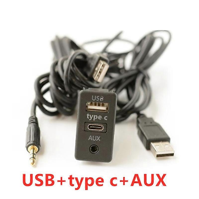 Car Boat DIY Flush Mount Jack Type USB C Aux Interface 3in1 Auto Car Power Cable Extension Cable