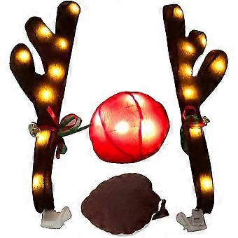 Car Christmas Reindeer Antler Decorations, Glow Vehicle Christmas Car Decor Kit With Jingle Bells And Red Nose, Cute Reindeer Antler Christmas Car Cos