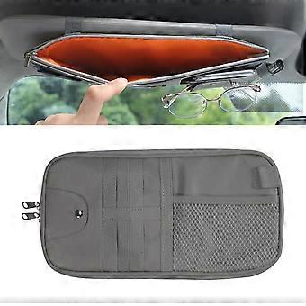 Car Sun Visor Decorative Storage Bill Glasses Holder Gray With 2 Zipper