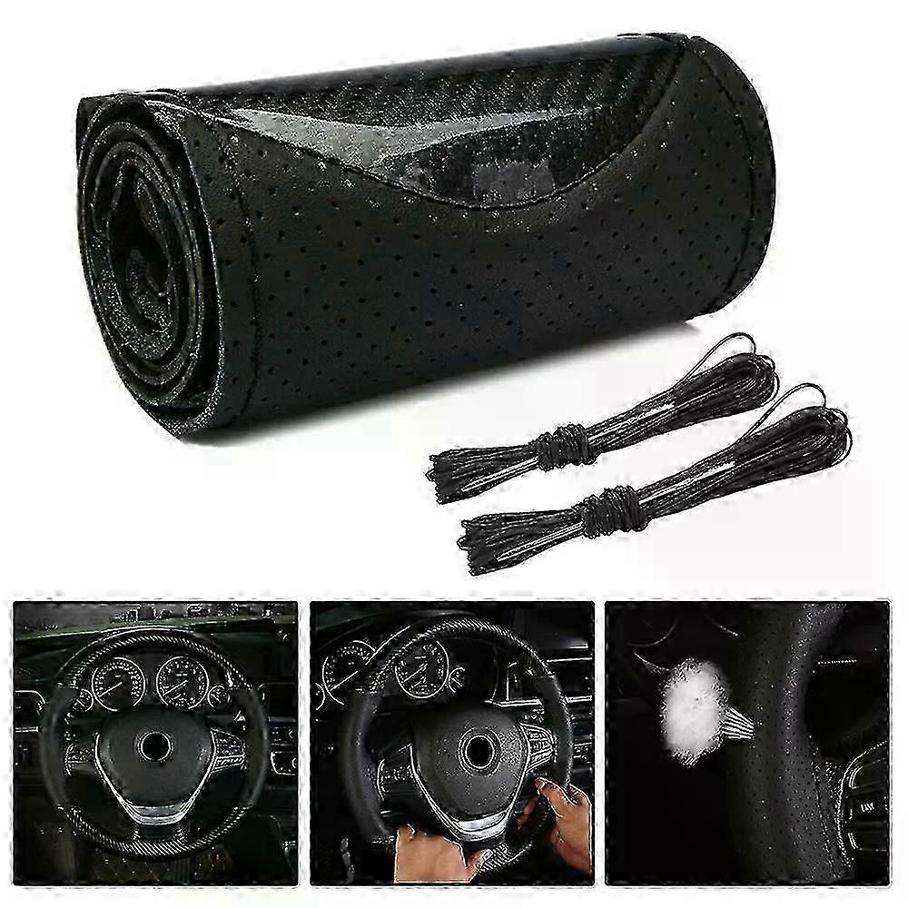 Carbon Fiber Car Steering Wheel Cover With Needles Thread Black 15 38cm DIY Sport Steering Wheel Braid Car Interior Set