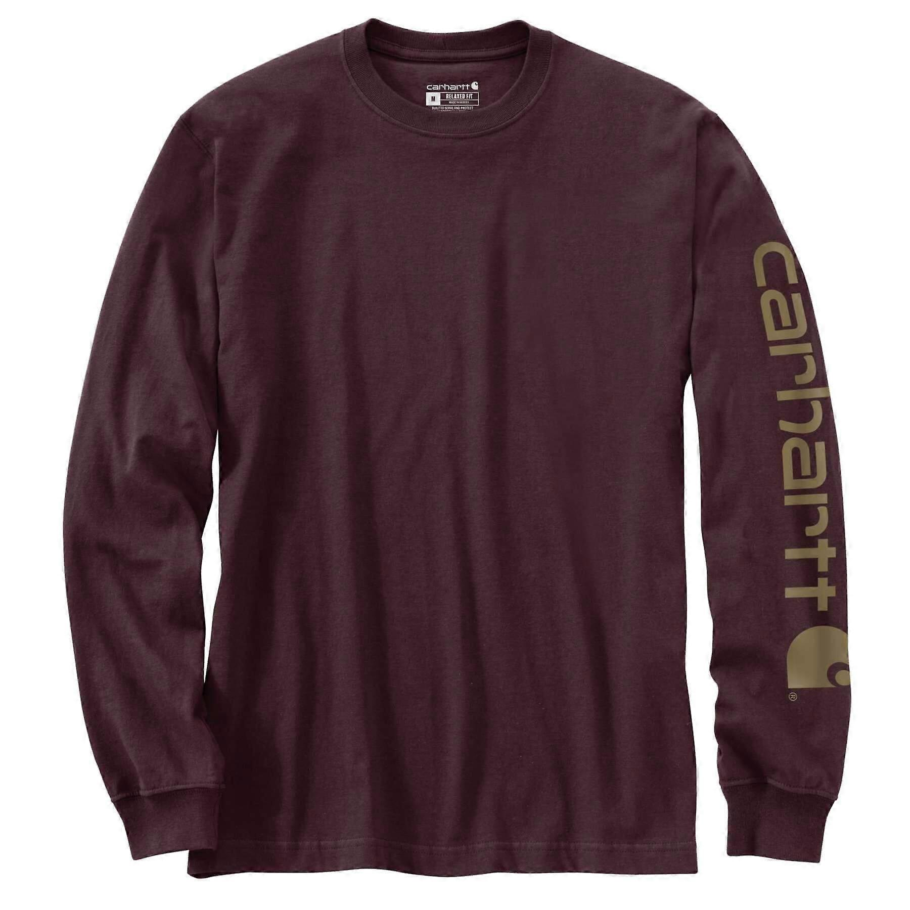Men's Relaxed Fit Long Sleeve T-Shirt With Sleeve LogoKey Features and Benefits RELAXED FIT 6.75 oz/yd² - 229 gsm BLACK , PEAT 100% Cotton CARBON HEATHER , CHILI PEPPER HEATHER , DARK COBALT BLUE HEATHER 60% Cotton/40% Polyester HEATHER GREY 90% Cotton/10% Polyester Heavyweight Jersey Long Sleeve Rib knit crew neck Rib knit cuffs Carhartt "Signature Logo" plastisol graphic print on front What Carhartt say:Since 1889, Carhartt has made durable workwear you can count on as you tackle the toughest jobs. This men's long-sleeve t-shirt bears the name proudly on the sleeve. Made of heavyweight cotton jersey and Relaxed fit cut for free movement.