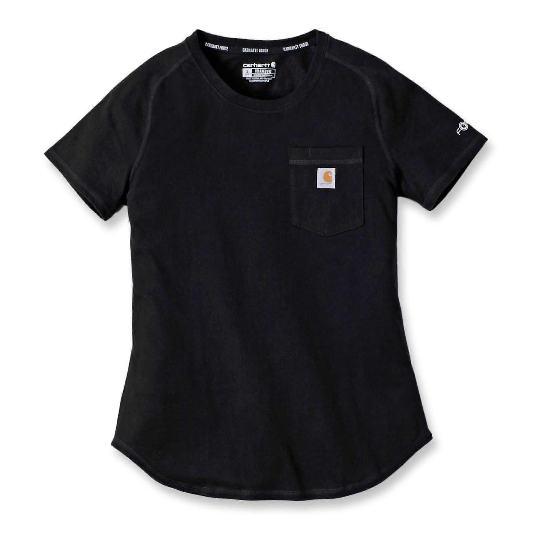 Carhartt Force™ T-Shirt With Chest PocketKey Features and Benefits RELAXED FIT 5.75 oz/yd² - 195 gsm BLACK 65% Polyester/35% cotton HEATHER GREY 59% Cotton/41% Polyester Carhartt Force™ Jersey with Flex Delmont Mesh back Carhartt Force™ - FastDry™ combined with anti-microbial properties FastDry™ - Wicksaway moisture for comfort and fights odour with antimicrobial finish Short Raglan Sleeve Rib knit crew neck Left chest pocket with pencil opening Curved hem Raglan sleeve increases range of motion Carhartt Force™ labelling on left sleeve· Carhartt label sewn on pocket What Carhartt say:An everyday tee with Carhartt pride, this women’s short-sleeve t-shirt keeps you cool and comfortable whether on the job or off. Midweight cotton jersey is sweat-fighting and quick-drying. Mesh sleeves and back keep air circulating to help you stay cool when the work heats up. A relaxed fit gives you room to move.