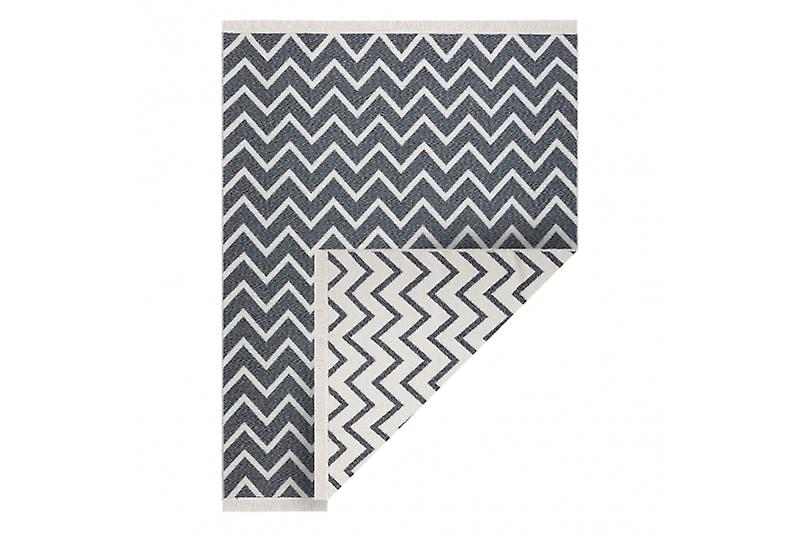Carpet TWIN 23002 ZigZag, cotton, double-sided, Ecological fringes - anthracite / cream