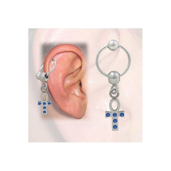 Cartilage - tragus ahnk charm design with jewels (16g-3/8 in-10mm) bj70188