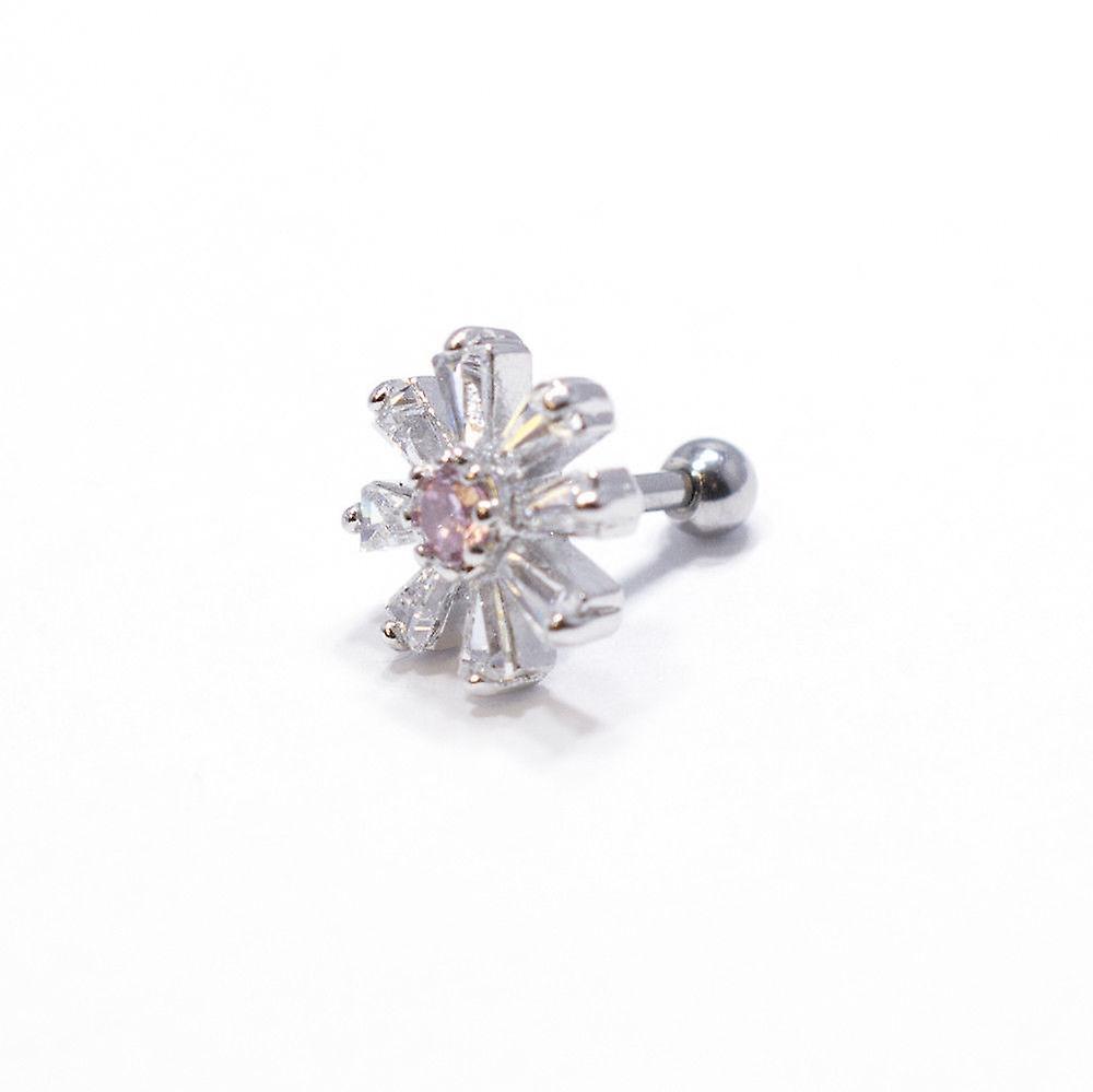 Cartilage tragus bar princess cut cz petal flower with pink cz center 316l steel