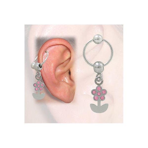 Cartilage - tragus flower design with jewels (16g-3/8 in-10mm) bj04876