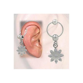 Cartilage - tragus flower design with jewels (16g-3/8 in-10mm) bj94124
