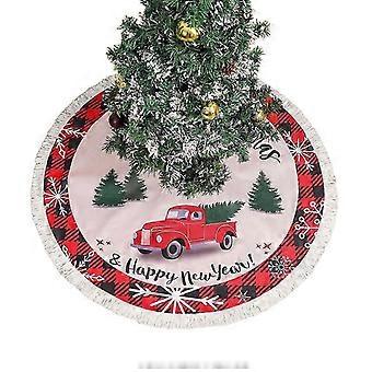 Cartoon Classic Plaid and Red Truck Pattern Tree SkirtFestive Holiday Decor