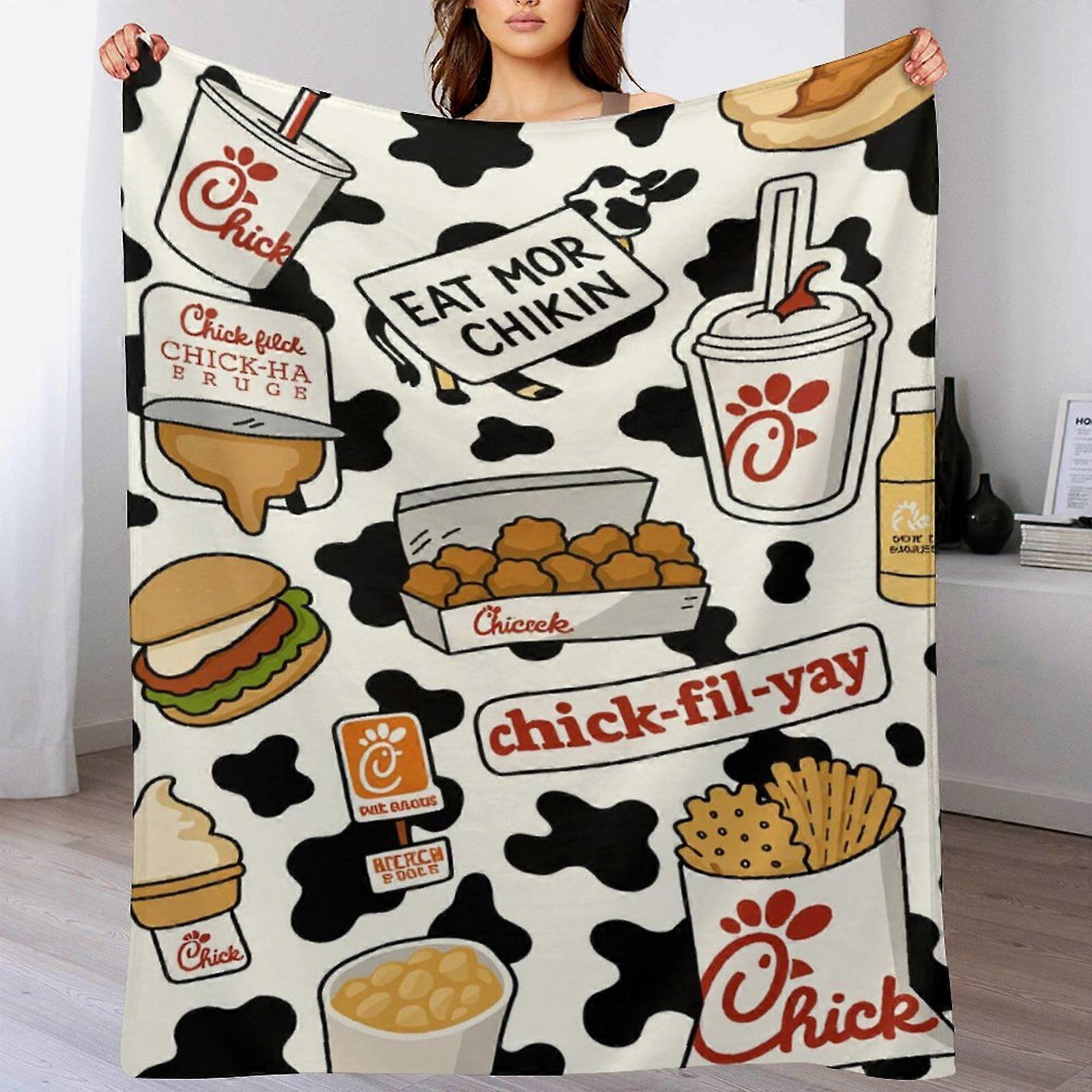 Cartoon Fast Food Graphic Chicken Lover Quote Printed Throw Blanket Cozy Home Decor for Adults