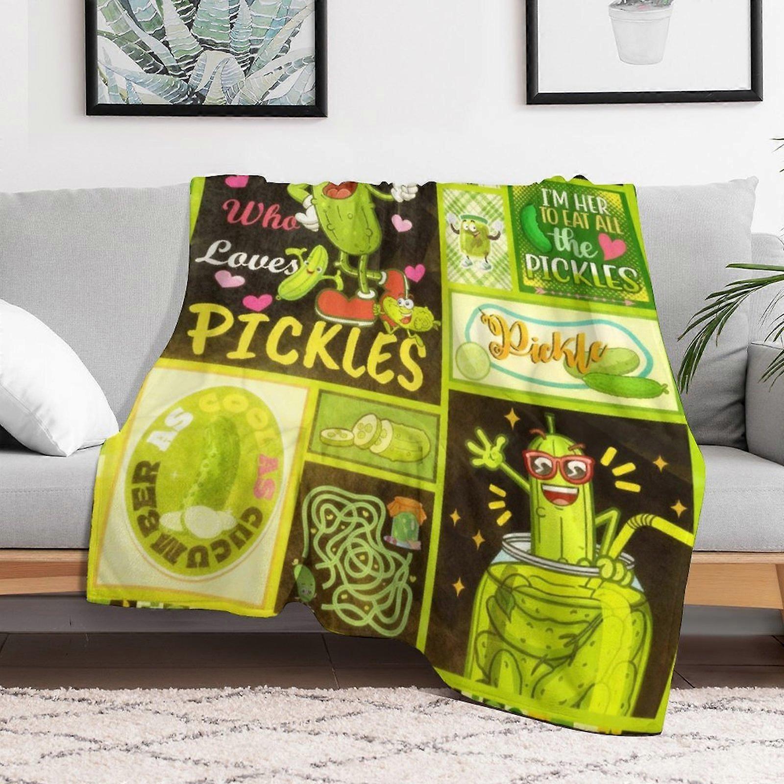 Cartoon Pickle Pattern Print Flannel Blanket - Soft Warm Throw for Bedroom | Funny Gift for Pickle Lovers