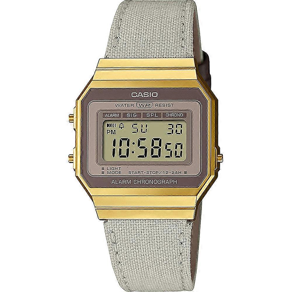 Casio A700wegl-7aef Unisex Digital Watch - Gold-tone Case With Beige Cloth Strap