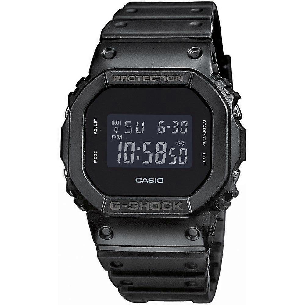 WR: 2 ATM - Case: 43 mm - Gender: Men - Case Material: Resin - Strap Material: Resin - Movement: Quartz - Functions: Multifunction - Glass: Mineral - Product Type: Wristwatch - Product Description: The Casio G-Shock DW-5600BB-1ER is a minimalist men's digital watch, featuring an all-black design that emphasizes simplicity and functionality. Key Features: Design: Entirely black resin case and band with a matte finish, highlighting the watch's shape and providing a sleek appearance.Display: Digital display with an electro-luminescent backlight for easy readability in various lighting conditions.Functions:Stopwatch: 1/100-second stopwatch with a measuring capacity of up to 24 hours.Countdown Timer: Countdown range from 1 second to 24 hours, with auto-repeat functionality.Alarm: Multi-function alarm to remind you of important events.Hourly Time Signal: Emits a signal every hour on the hour.Full Auto-Calendar: Pre-programmed calendar displaying the day, date, and month.Shock Resistance: Engineered to withstand mechanical shock and vibration, ensuring durability.Water Resistance: 200 meters, suitable for professional marine activities and serious surface water sports.Battery Life: Approximately 2 years on a CR2016 battery.Dimensions: 48.9mm height, 42.8mm width, and 13.4mm thickness.Weight: 53 grams, providing a lightweight and comfortable feel on the wrist.SpecificationValueWR2 ATMCase43 mmGenderMenCase MaterialResinStrap MaterialResinMovementQuartzFunctionsMultifunctionGlassMineralProduct TypeWristwatchPackagingOfficial Box