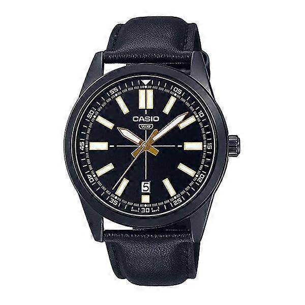 Casio Mtp-vd02bl-1eudf Men's Black Leather Watch – Black Dial