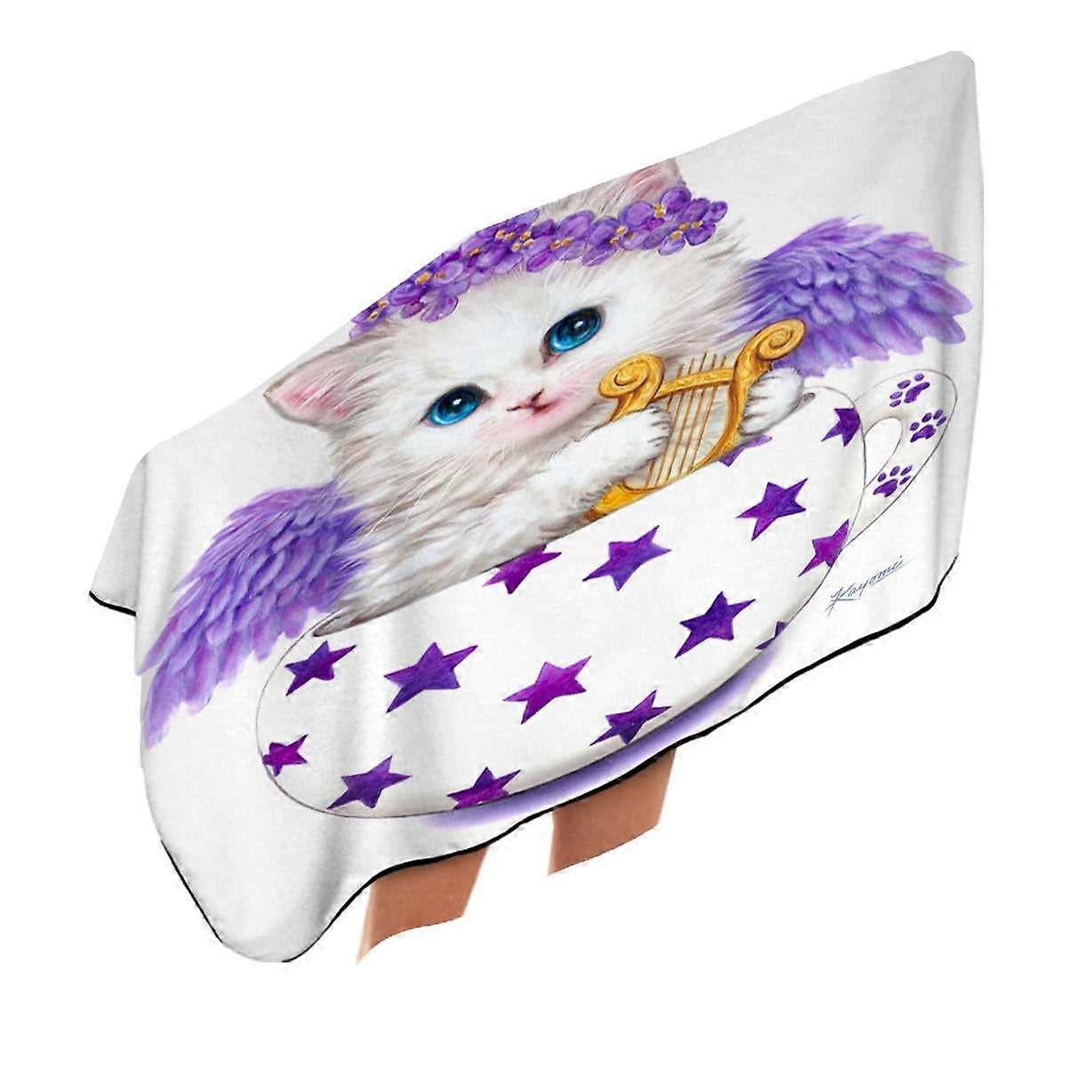 Cat Art Drawings the Cup Kitty Harp Angel Microfiber Beach Towel