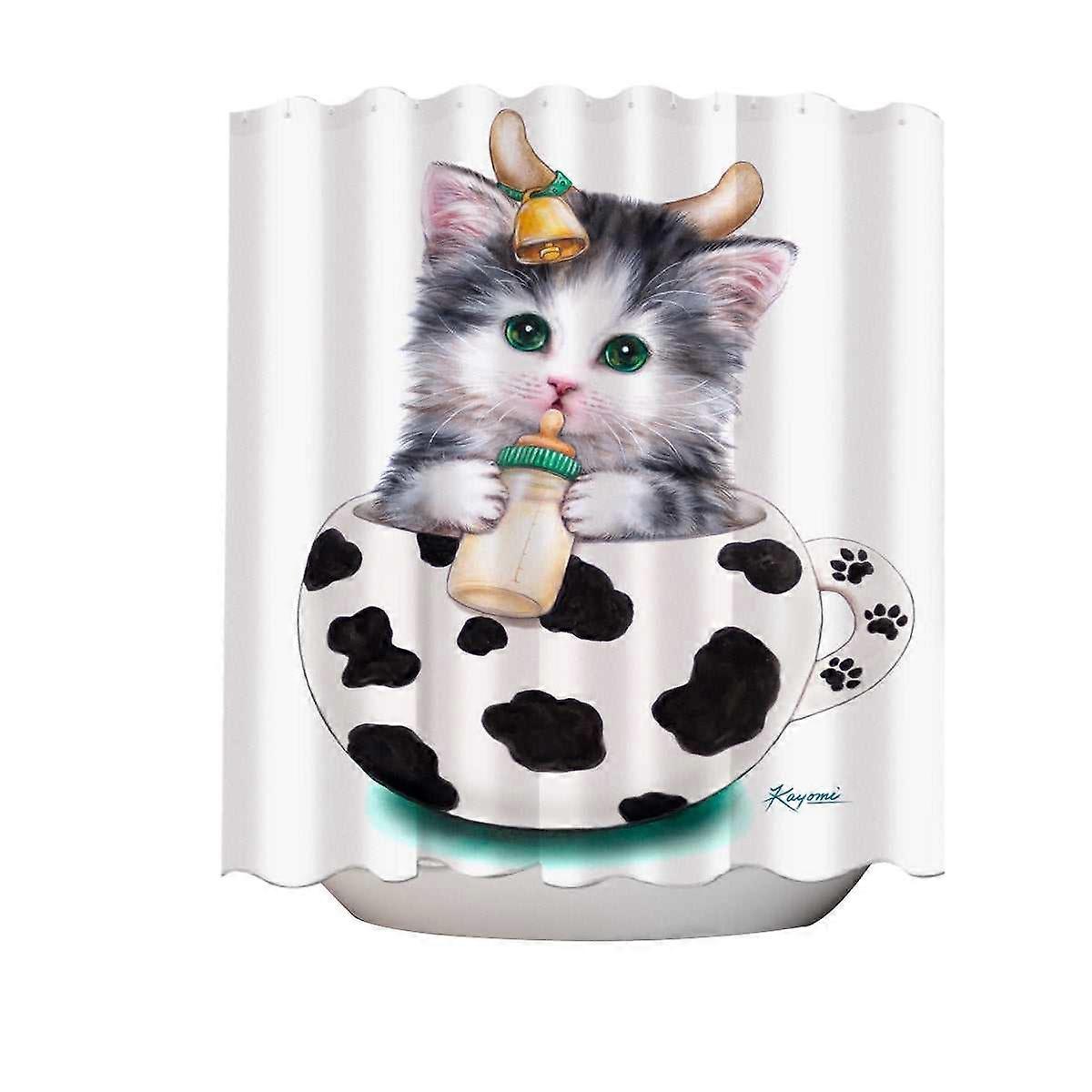 Cat Art Drawings the Cute Cup Kitty Cow Shower Curtain