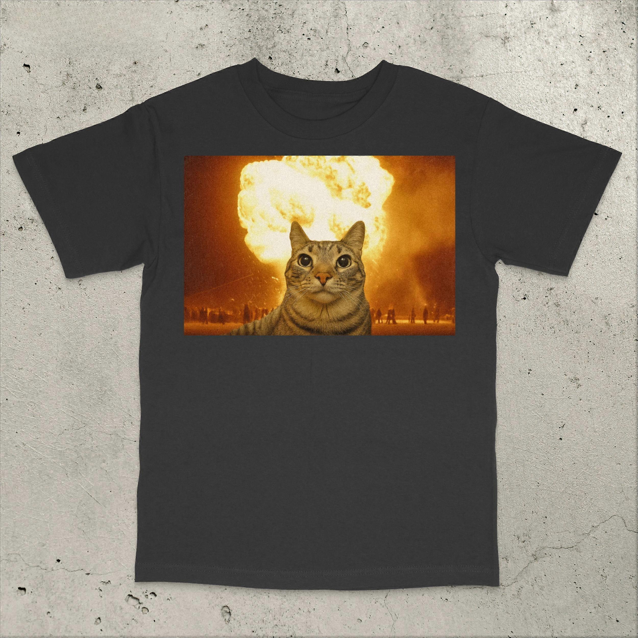 Cat Explosion Funny Meme T-Shirt Men's and Women's Fashion Short Sleeve Cotton Tees Retro Hip Hop Shirt Summer Tops Men Clothing