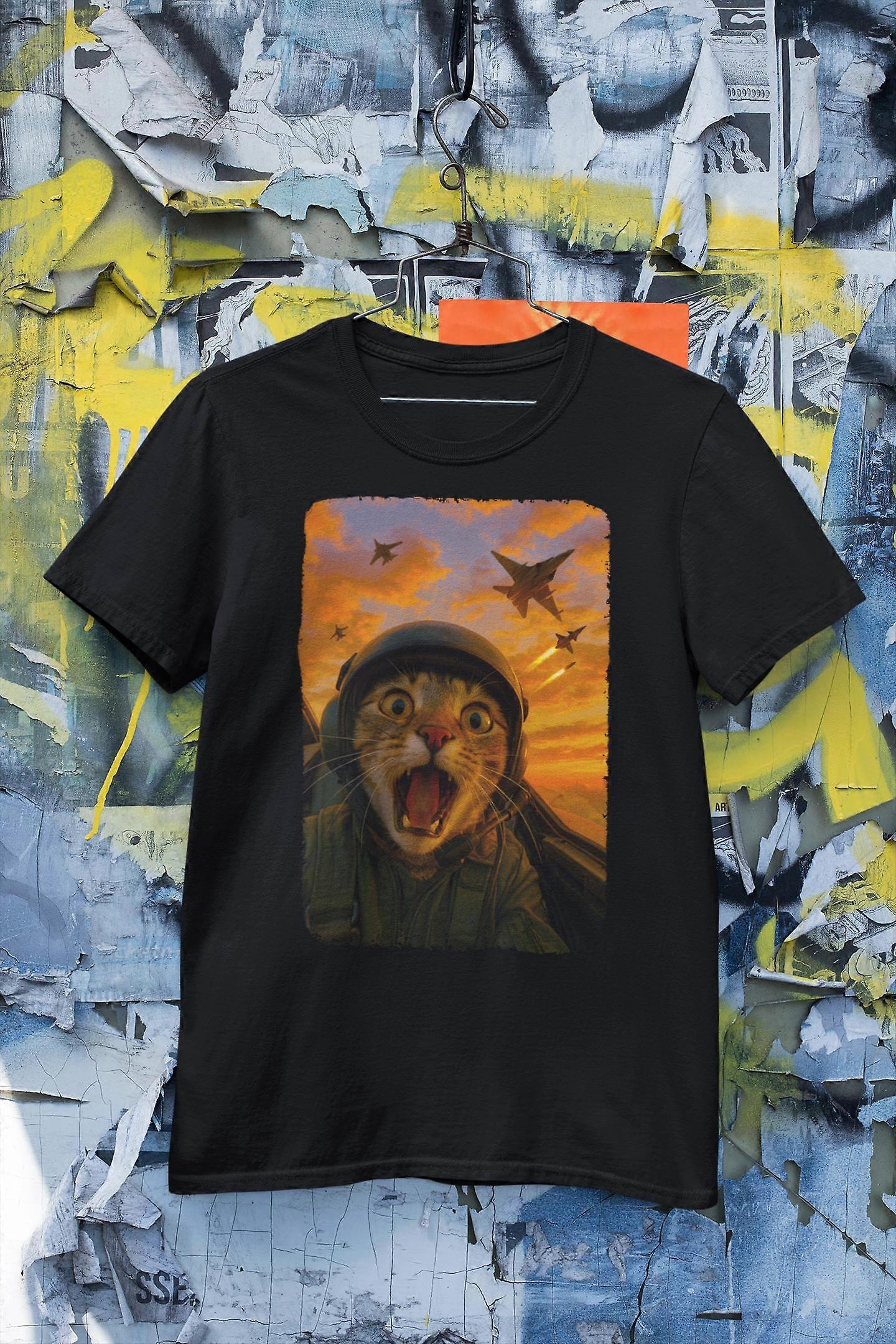 Cat Fighter Pilot Shirt Funny Cat Selfie Meme Tee Jet Fighter Selfie Style Cat Meme Shirt Aviation Humor Internet Parody Tee