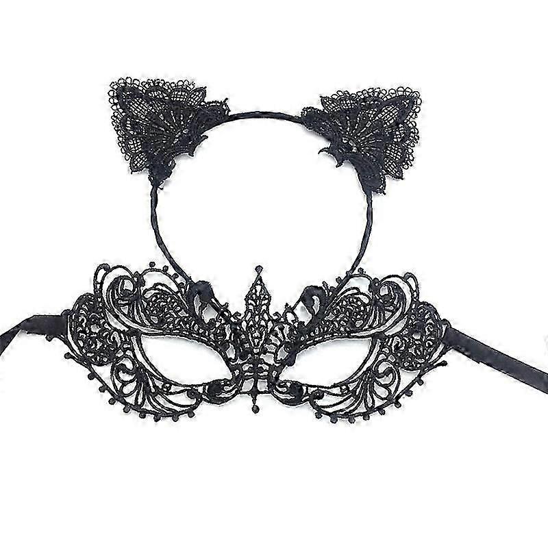 Cat Mask And Cat Ears Headband Ladies Masquerade Halloween Mask Costume Catwoman Accessories