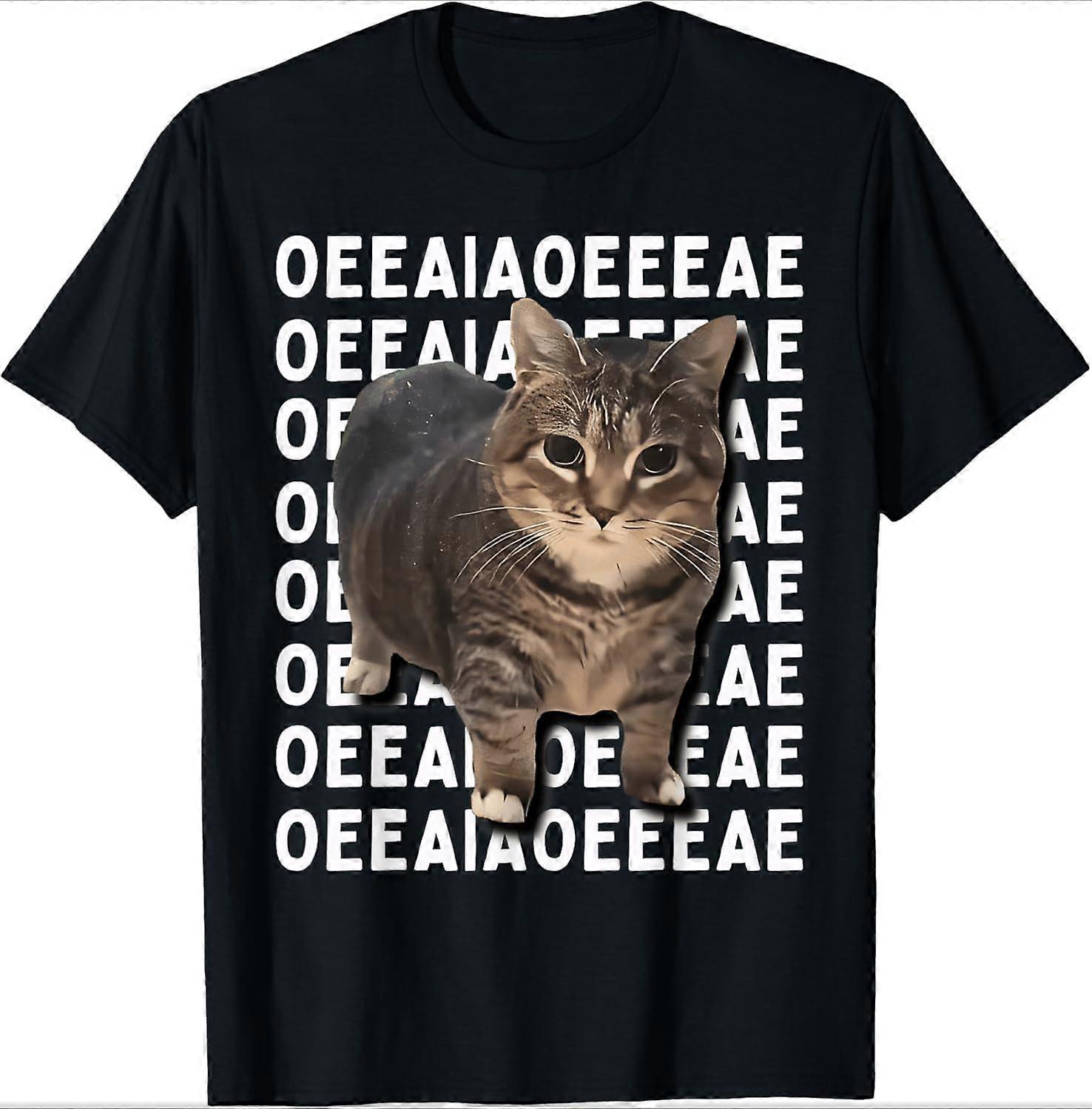 Cat Meme T-Shirt Humorous Abstract Design Women's Loose-Fit Crew Neck Short Sleeve Casual Everyday Basic Top for Daily Wear