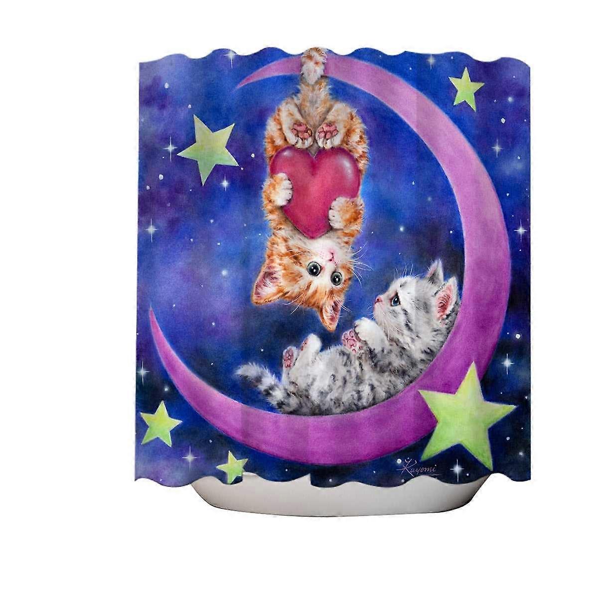 Cats Art Romantic Moon Space Starts and Kittens Shower Curtain