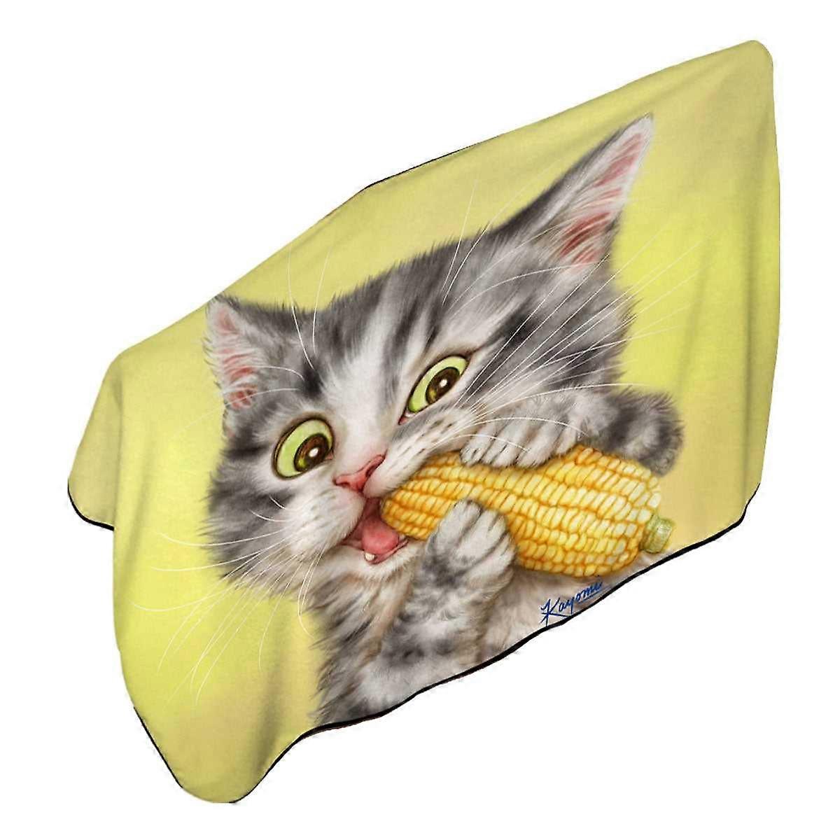 Cats Funny Art Painting Grey Tabby Eating Corn Microfiber Beach Towel