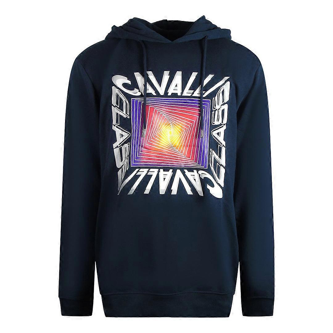 Cavalli Class Asymmetric Box Design Navy Blue Hoodie