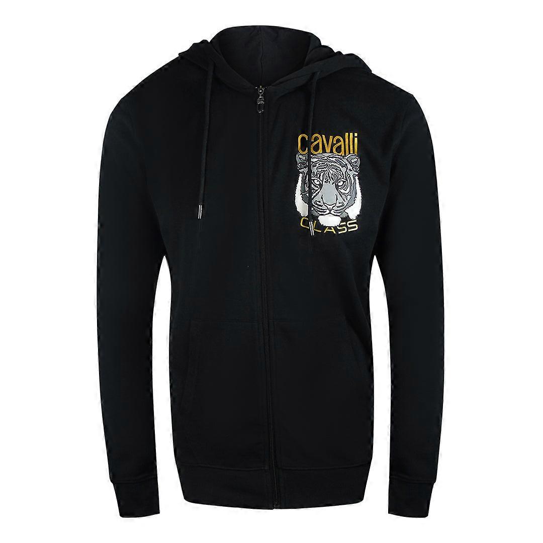 Cavalli Class Bold Tiger Graphic Logo Black Zip-Up Hoodie