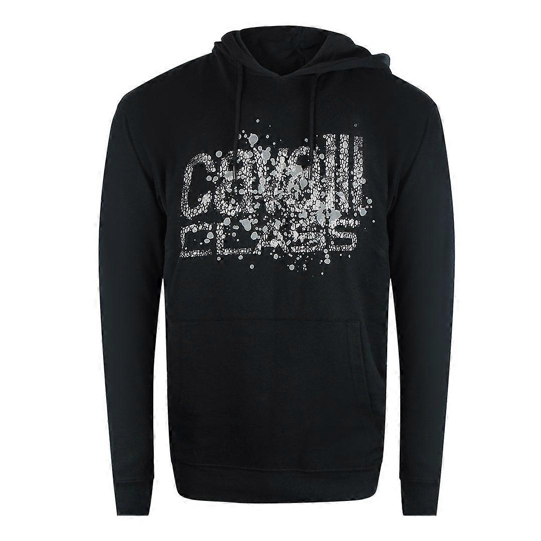 Cavalli Class Cracked Sprayed Logo Black Hoodie
