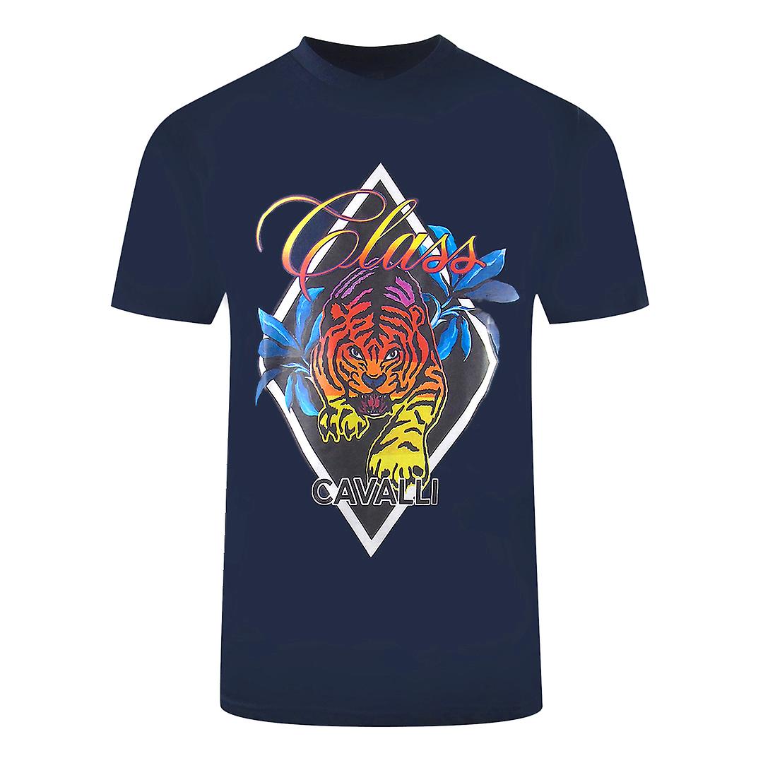 Cavalli Class Diamond Tiger Design Navy Blue T-Shirt