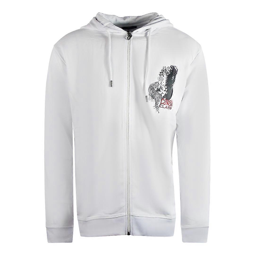 Cavalli Class Large Tiger Design White Zip-Up Hoodie