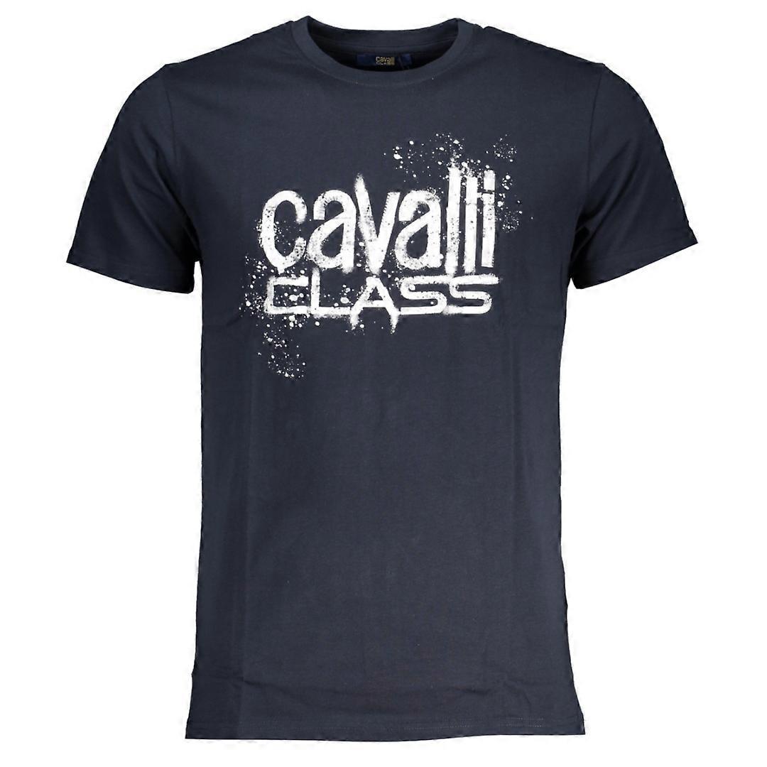 Cavalli Class Paint Splatter Logo Navy Blue T-Shirt