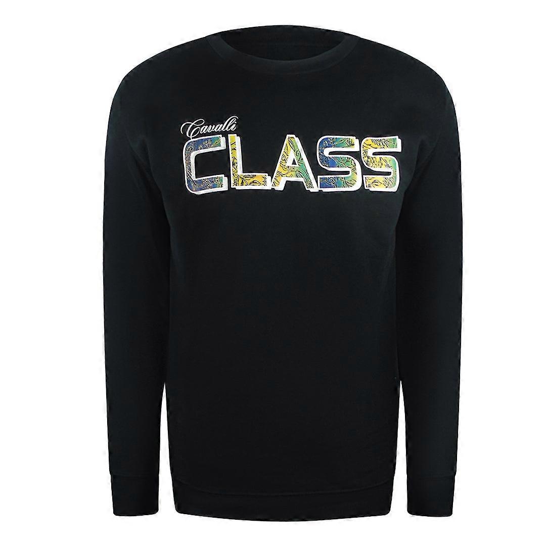 Cavalli Class Vibrant Floral Logo Black Round Neck Sweatshirt