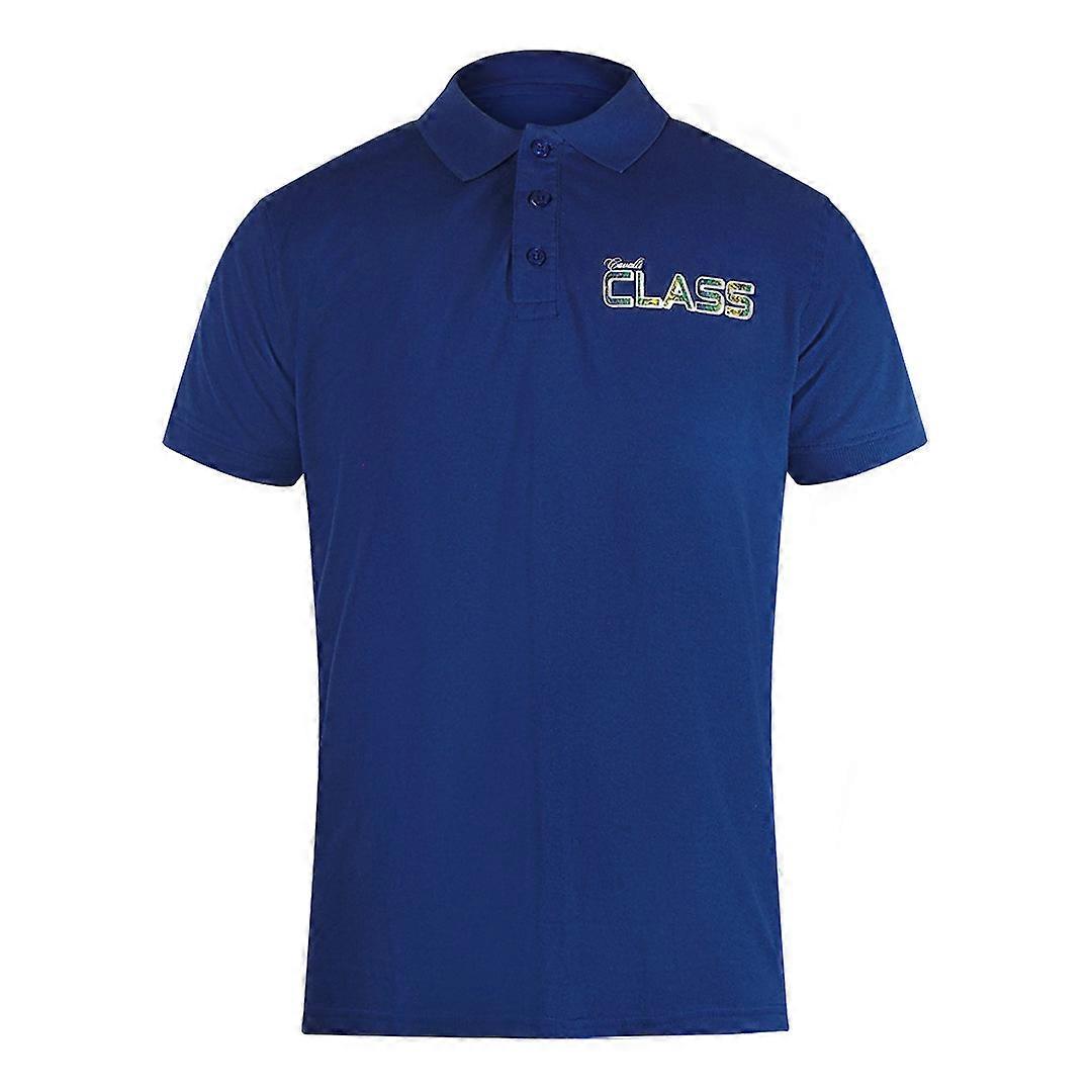 Cavalli Class Vibrant Floral Logo Iris Blue Polo Shirt