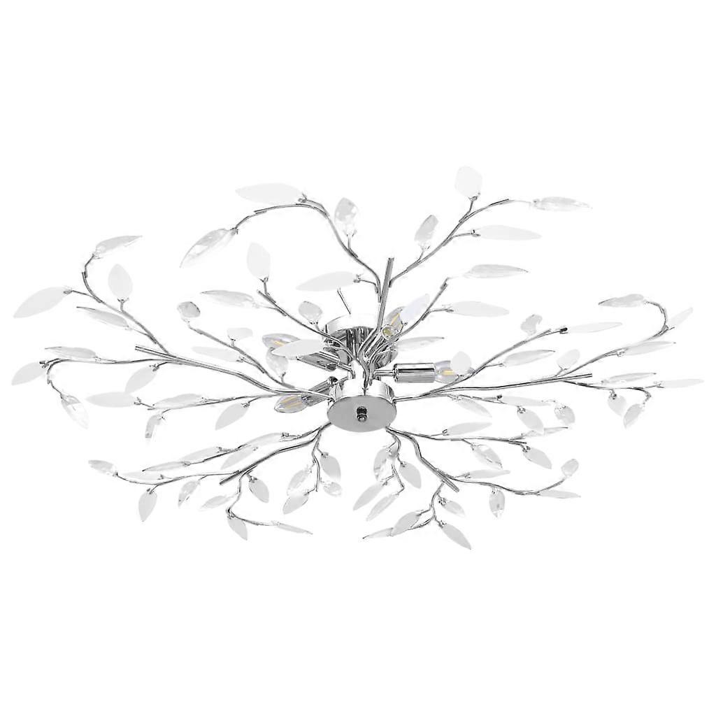 Diese exklusive Deckenleuchte zeichnet sich durch angenehme Schlichtheit aus und ist eine gute Wahl, um Ihr Wohn- oder Schlafzimmer zu verschönern. Diese Lampe kann einfach an jede Decke mit einem Metallsockel montiert werden. Das matt verchromte Finish trägt zum zeitgemäßen Stil der Lampe bei. Das Design in Blattform vervollständigt den modernen Look. Das auf den Acrylblättern reflektierte Licht bietet eine einzigartige Beleuchtungslösung für Ihr Zuhause. Darüber hinaus lässt sich das Acrylmaterial einfach mit einem feuchten Tuch reinigen. Dieser Artikel lässt sich einfach montieren. Farbe: WeißMaterial: Verchromtes Metall, AcrylGesamtmaße: 100 x 15 cm (Durchmesser x H)Spannung: 220 - 240 V~Max. Leistung: 5 x 40 WLampenfassung: E14Design in BlattformZusammenbau erforderlich: JaHinweis: Leuchtmittel sind nicht im Lieferumfang enthalten